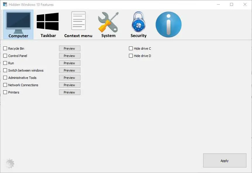 Ce programme a été conçu pour permettre aux utilisateurs de Windows d’activer et de désactiver des fonctionnalités Windows qui, pour diverses raisons, ont été masquées dans le système d’exploitation. Toutes les fonctionnalités que ce programme nous offre peuvent être activées et désactivées à partir du registre Windows. Cela signifie que son activation est totalement sûre (les fichiers Windows essentiels ne sont pas modifiés) et, de plus, nous pouvons annuler les modifications à tout moment à partir de ce même programme.