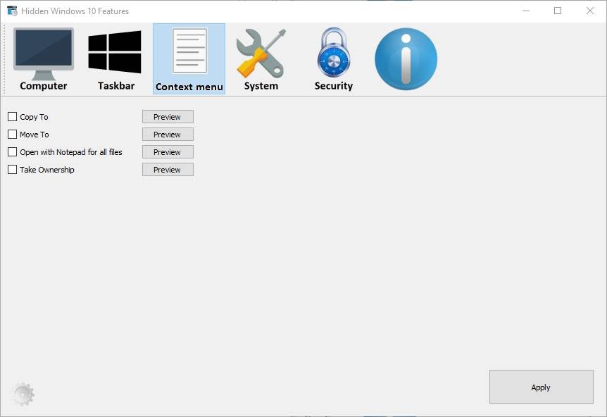 Dans cette section, nous pourrons configurer tout ce qui concerne le menu contextuel de notre Windows 10. Nous pourrons activer les fonctions «Copier vers» ou «Déplacer vers», un accès à «Ouvrir avec bloc-notes» pour tous les types de fichiers et une fonction pour obtenir des autorisations sur n’importe quel fichier sur notre PC.
