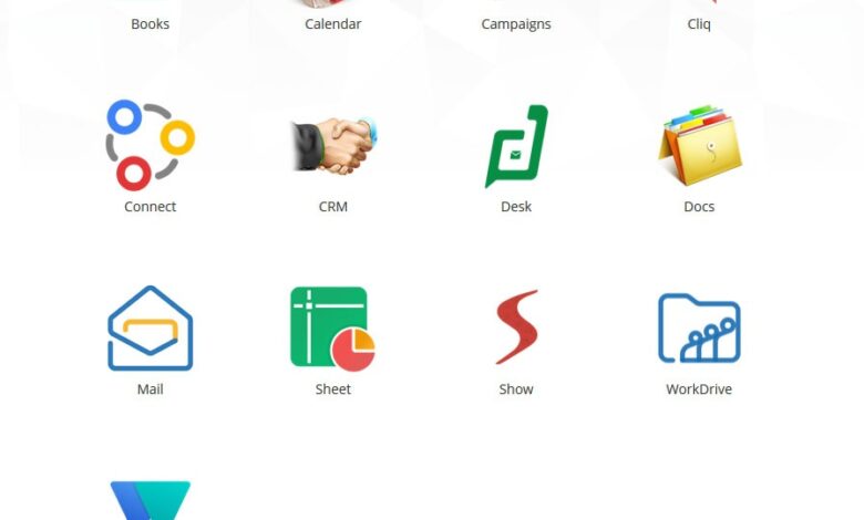 Pour commencer à travailler avec ces outils que Zoho propose, lors de l’accès à l’URL principale, en haut, nous verrons un lien appelé «Accéder à vos applications». Lorsque vous cliquez dessus, les principaux outils dont nous avons parlé plus tôt apparaîtront à l’ écran . De même, il est à noter qu’en cliquant sur «Toutes les applications», le reste apparaîtra classé par type de travail.