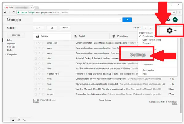 - Lorsque vous êtes entré dans votre boîte de réception, cliquez sur l’icône de roue située en haut à droite de votre écran.