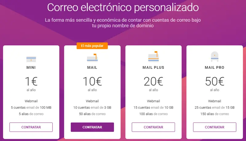C’est le grand avantage, la facilité d’accès et de ne rien configurer ; mais il y a aussi certains aspects qui se transforment en inconvénients à prendre en compte. Pour commencer, le stockage des e-mails est limité , bien que cela dépende de ce que propose votre hébergement; Pour conclure, les outils proposés par son interface, bien qu’ils fonctionnent, peuvent être assez courts lorsqu’il s’agit de vouloir lui donner une utilisation plus profonde.