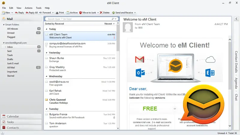 A partir de deux versions (une gratuite et une payante), ce client de messagerie n’est disponible que pour Windows et présente de superbes fonctions pour gérer jusqu’à deux comptes de messagerie en même temps , même en utilisant sa version gratuite.