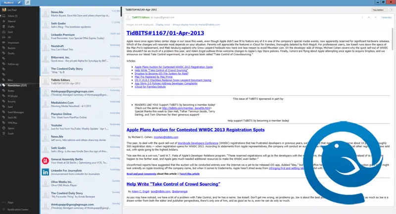 De son côté, il dispose d’une grande variété de fonctions supplémentaires, parmi lesquelles un calendrier, un nombre remarquable de plugins pour une expérience plus personnalisée et aussi un agrégateur RSS. Concernant son interface, on peut affirmer qu’elle est très similaire à celle exposée par Mozilla Thunderbird.