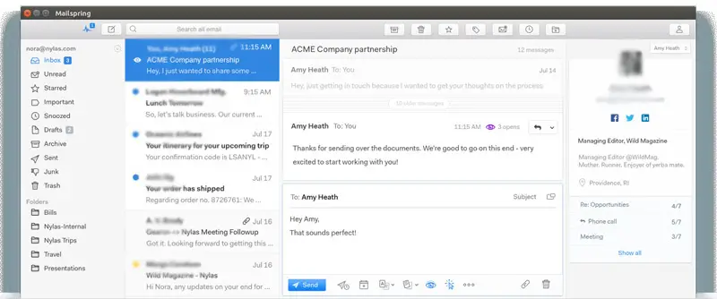 En plus de cela, la plateforme présente plusieurs options de personnalisation basées sur des thèmes que vous pouvez utiliser pour modifier son apparence visuelle à votre guise . De plus, Nylas Mail est modulaire et en effet, des plugins de différents types peuvent y être installés. Il a également des versions pour Windows, Mac OS X, Linux et est open source.