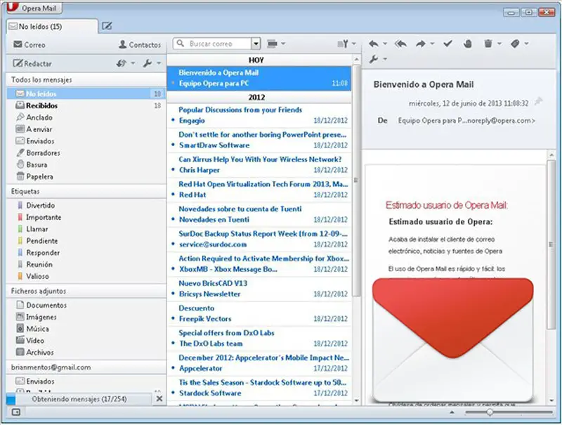 Comme son nom l’indique, il s’agit d’un client de messagerie conçu par le navigateur Web Opera . Ainsi, il s’agit d’ un outil open source totalement personnalisable et très léger, qui présente une compatibilité avec Windows. Ajouté à cela, il est considéré comme une excellente alternative car il s’agit d’un logiciel entièrement gérable pour lire facilement les e-mails que vous recevez.