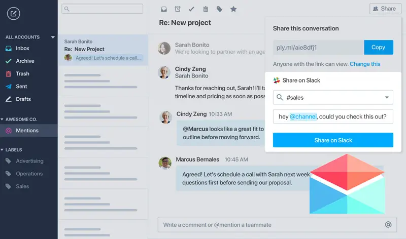 En plus de cela, il est compatible avec Windows, Mac OS X, Android et IOS, et fonctionne même parfaitement dans Gmail et Outlook . Il ajoute également des fonctionnalités telles que la recherche rapide, la synchronisation cloud entre les appareils, le filtrage intelligent par type de message, le marquage automatique et la protection contre le phishing , l’usurpation d’identité et la contrefaçon.