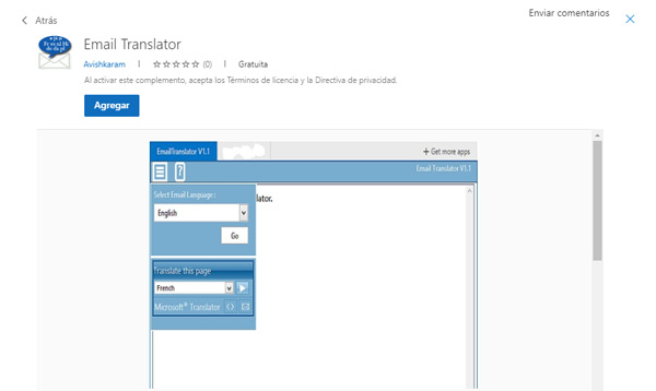 Cependant, contrairement à d’autres e-mails tels que Gmail, dans Outlook, nous ne trouverons que des compléments qui nous donneront accès aux données du message électronique avec lequel nous travaillons.