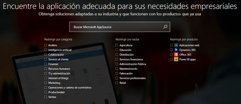 Pour cela, il existe un grand nombre d’ extensions disponibles et que l’on peut trouver dans l’Office store à partir de l’email ou en entrant directement dans Microsoft AppSource . À partir de là, nous pouvons commencer à installer les modules complémentaires dont nous avons besoin.