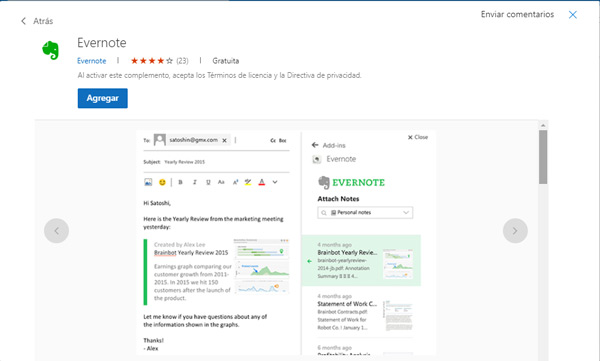 Par conséquent, vous pouvez utiliser la plate-forme Evernote pour commencer à enregistrer les messages importants que vous recevez dans votre e-mail, de cette manière, vous pouvez facilement les rechercher chaque fois que nécessaire. De plus, dans Evernote, vous avez la possibilité de les organiser et de créer des projets où vous partagerez leurs informations chaque fois que vous recevrez de nouveaux e-mails.