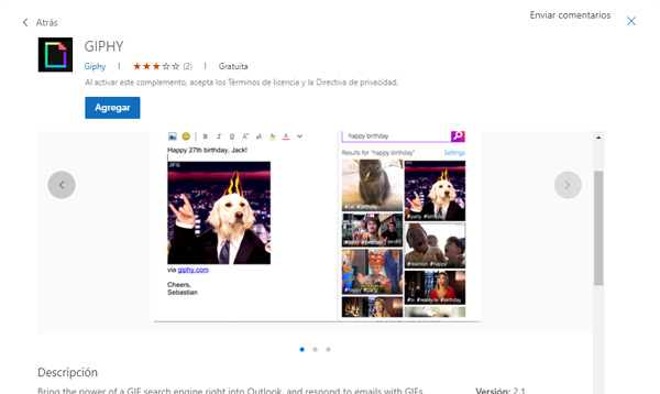 Par conséquent, si vous êtes un utilisateur qui aime interagir en permanence avec les Gifs , vous pouvez commencer à installer Giphy’s adoon, un plugin qui vous permettra d’ envoyer et de rechercher des gifs animés dans chacun de vos emails et ainsi de les insérer dans vos messages. des e-mails afin qu’ils puissent être vus par les destinataires. Ils rendront vos conversations par e-mail beaucoup plus amusantes.