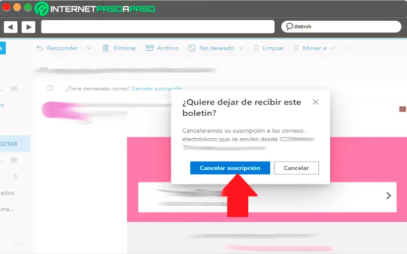 - Maintenant, dans la partie supérieure de la fenêtre , juste au-dessus de l’email que vous avez rédigé, vous trouverez l’option «Annuler l’abonnement», que vous sélectionnerez d’un clic.