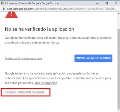 - Google indiquera que pour l’instant le service n’est pas lié, c’est pourquoi nous devons entrer dans les «Paramètres avancés» sur le même écran et cliquer sur «Aller à la désinscription Gmail (non sécurisé)».
