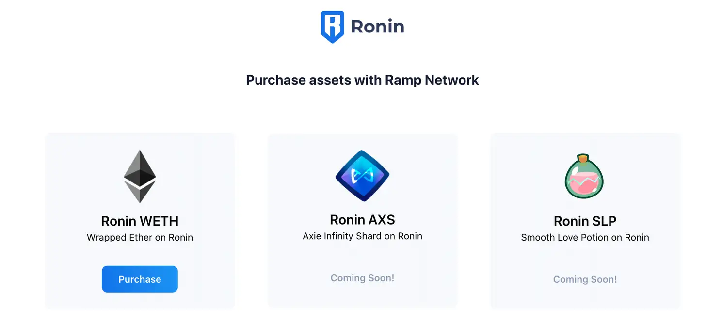 [Axie] Achetez des ETH avec Fiat sur Ronin en utilisant Ramp !