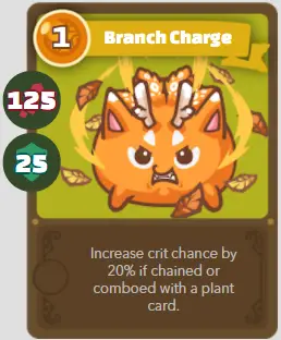 | B | Petite branche | Frais de succursale | 1/125/25 | Augmente le pourcentage de critique de 20% si enchaîné ou combiné avec une carte plante. |