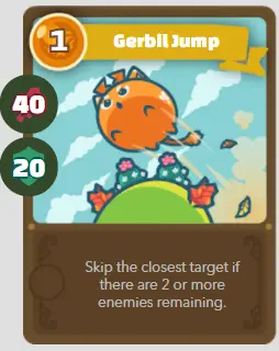 | ré | Gerbille | Saut de gerbille | 1/40/20 | Ignorez la cible la plus proche s’il reste 2 ennemis ou plus. |