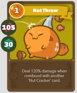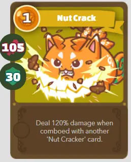 | S | Casse Noisette | Casse de noix | 1/105/30 | Inflige 120% de dégâts lorsqu’il est combiné avec une autre carte «Casse-Noisette» |
