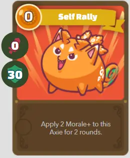 | C | Sur de soi | Auto rallye | 0/0/30 | Appliquez 2 Moral + à cette Axie pendant 2 rounds. |