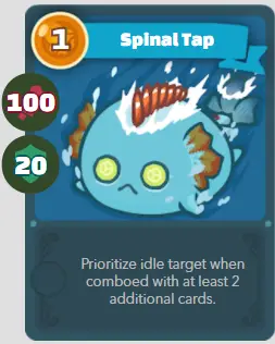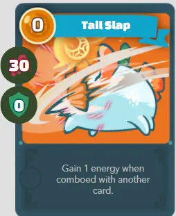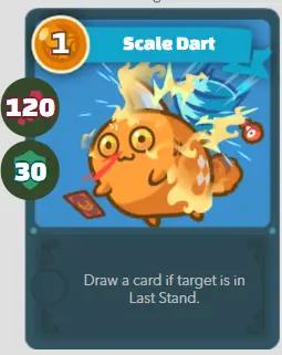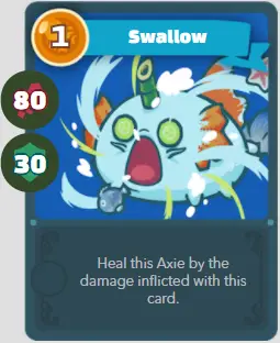 | B | Poisson-chat | Avaler | 1/80/30 | Soignez cette Axie pour les dégâts infligés avec cette carte. |