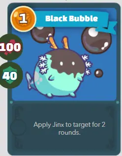 | ré | Têtard | Bulle noire | 1/110/40 | Appliquez Jinx à la cible pendant 2 tours. |