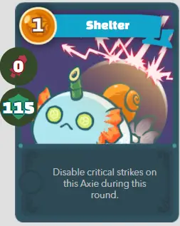 | B | Ermite | Abri | 1/0/115 | Désactivez les coups critiques de cette Axie pendant ce tour. |