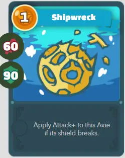 | B | Éponge | Naufrage | 1/60/90 | Appliquez Attaque + à cette Axie si son bouclier se brise. |