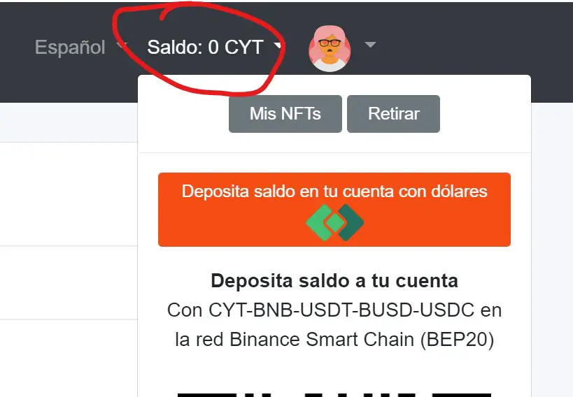 - Les CYT sont dans Meta Mask, pour les utiliser, vous devrez les transmettre à https://hub.coinary.com/dashboard votre adresse est dans le coin droit à côté du bouton de langue. L’adresse prend uniquement en charge CYT-BNB-USDT-BUSD-USDC sur le réseau Binance Smart Chain (BEP20).