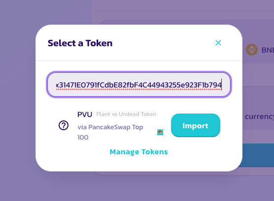 4. Échangez votre BNB contre des jetons PVU