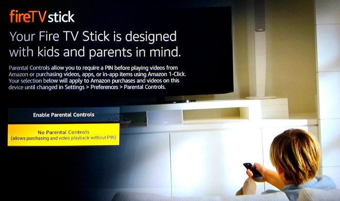 L’écran suivant vous permet d’appliquer le contrôle parental à votre Fire TV Stick. Cela vous permettra de définir un mot de passe PIN à 5 chiffres, qui est requis chaque fois qu’un utilisateur souhaite lire une vidéo réservée aux adolescents ou plus, ou pour acheter un article.