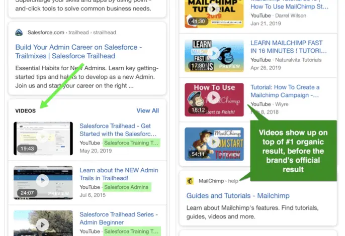 Pour que vous compreniez l’importance d’apparaître dans le carrousel vidéo Google. Sur les appareils mobiles, il occupe la quasi-totalité de l’écran pour la grande majorité des recherches.