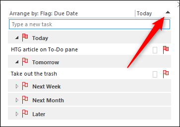 Si vous cliquez sur la flèche sombre à côté de «Aujourd’hui», l’ordre de l’organisation sera inversé, affichant vos tâches par ordre décroissant.