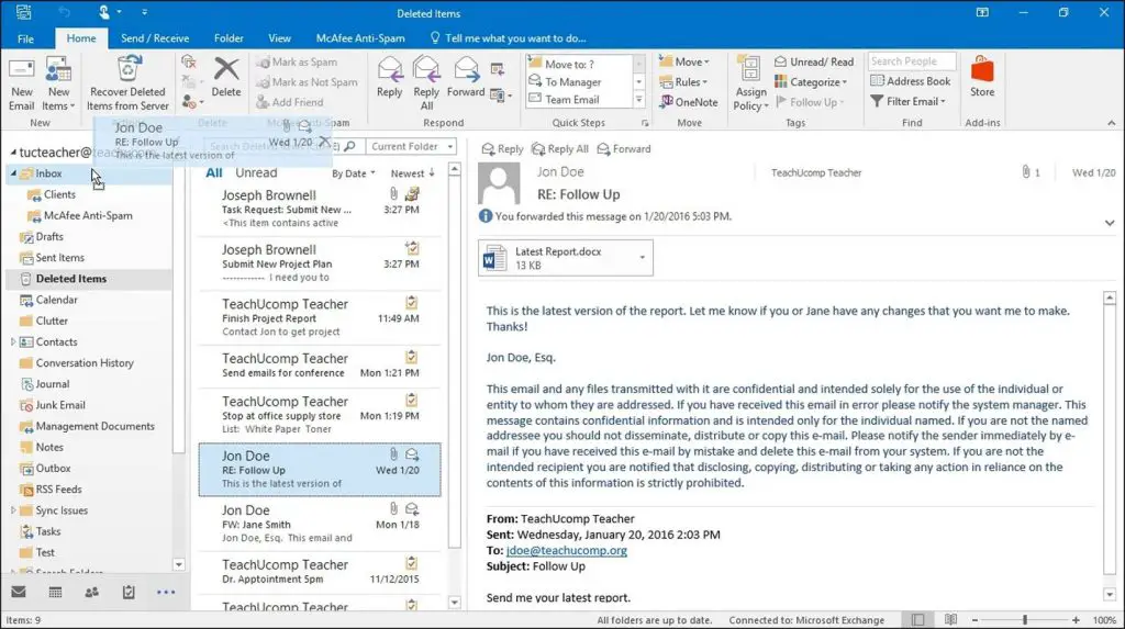 À ce stade, des clarifications supplémentaires doivent être apportées. Par exemple, cette fonctionnalité ne fonctionne pas avec les comptes qui utilisent IMAP, tels que Gmail. Dans de telles circonstances, les éléments supprimés sont déplacés vers le dossier Corbeille, attribué par les propres paramètres du compte. La seule façon de les récupérer est de profiter des outils Outlook, s’ils sont également disponibles sur ce client.