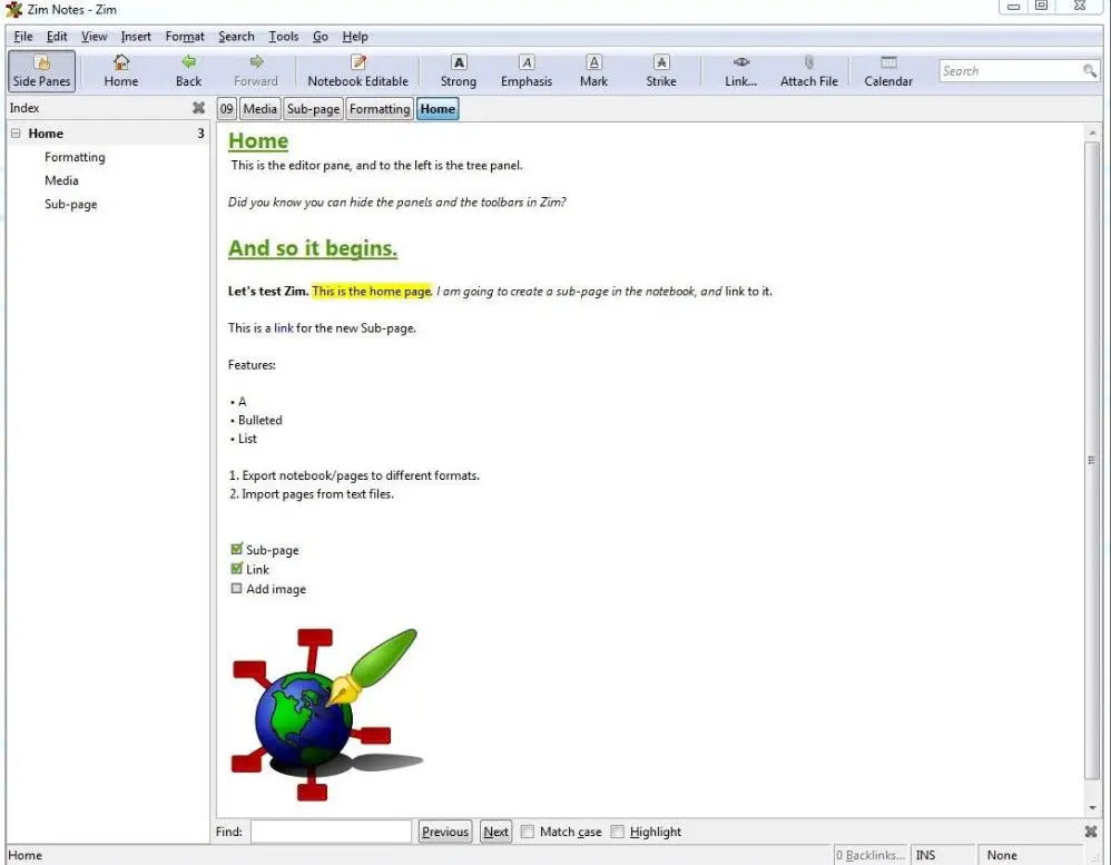 Tout d’abord, Zim n’est pas votre éditeur de texte ordinaire. C’est pourquoi si vous avez utilisé des éditeurs de texte hiérarchiques tels que: AllMyNotes Organizer ou Tree Notes, c’est presque la même chose. De même, Zim peut être utilisé pour créer des pages.