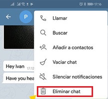 Enfin, nous sélectionnons l’option «Supprimer le chat».