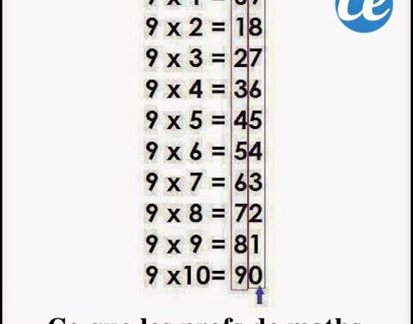 - Choisissez votre numéro à un chiffre préféré et multipliez-le par 9 mentalement