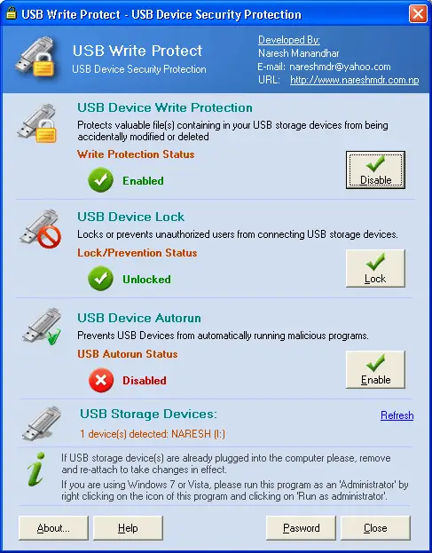 En tant que fonctionnalités supplémentaires, cet outil est capable de bloquer les ports USB pour empêcher quiconque de connecter une mémoire sans autorisation explicite et il est également capable de protéger les données d’une mémoire précédemment connectée contre l’écriture, c’est-à-dire toutes les données de ladite mémoire. ne peut être modifié ou éliminé par aucun type de logiciel malveillant ou par des utilisateurs non autorisés.