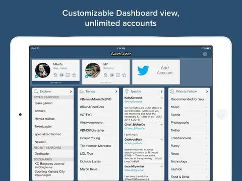 Ce client Twitter s’adresse directement aux utilisateurs qui ont besoin de travailler avec plusieurs comptes sur le réseau social en même temps. En termes de fonctions, il est très similaire au client Twitter officiel sauf qu’il a une apparence beaucoup plus professionnelle et optimisé pour les appareils avec de grandes résolutions, tout en vous permettant de basculer entre tous les comptes associés de manière beaucoup plus rapide.