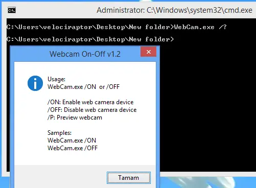 Pour les utilisateurs expérimentés, il y a la possibilité de contrôler cette application depuis CMD, ce qui peut conduire à la création de scripts qui, d’un simple double clic, la caméra est activée ou désactivée sans avoir à ouvrir l’application.