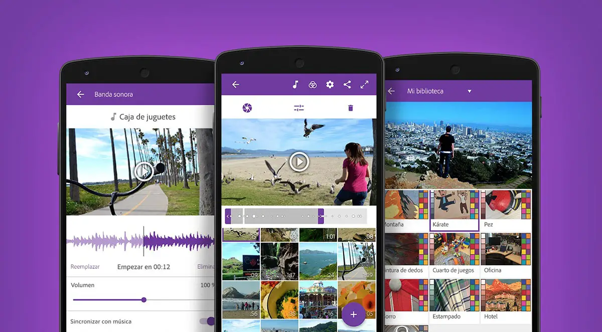De même, toutes les créations peuvent être facilement partagées sur tous les réseaux sociaux depuis l’application elle-même, ainsi que l’exportation des projets vers Adobe Premiere Pro CC sur PC et Mac. Ce dernier est possible grâce à Adobe CreativeSync , un bon outil Adobe qui le différencie. totalement des autres applications de montage vidéo Android.