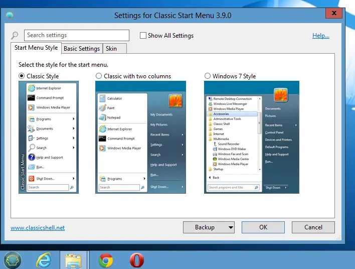Classic Shell Menu est une application gratuite qui recrée parfaitement les menus de démarrage de Windows 98, Windows XP et Windows 7 afin que l’utilisateur puisse choisir celui qui correspond le mieux à ses besoins. Avec plus de 6 millions de téléchargements, cette application est peut-être celle avec le moins de fonctions supplémentaires, mais la meilleure option si la seule chose que l’utilisateur recherche est un menu de démarrage classique, sans add-on et faible consommation.