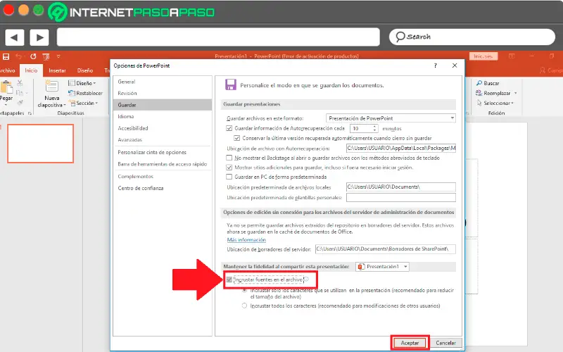 Cependant, il existe un moyen d’ éviter cet échec dans PowerPoint , pour cela, le système comprend un outil qui vous permet d’ incorporer les polices utilisées dans le document dans le fichier lui-même . Cela permet que lorsque le document est ouvert sur un autre ordinateur, il puisse être affiché sans problème.