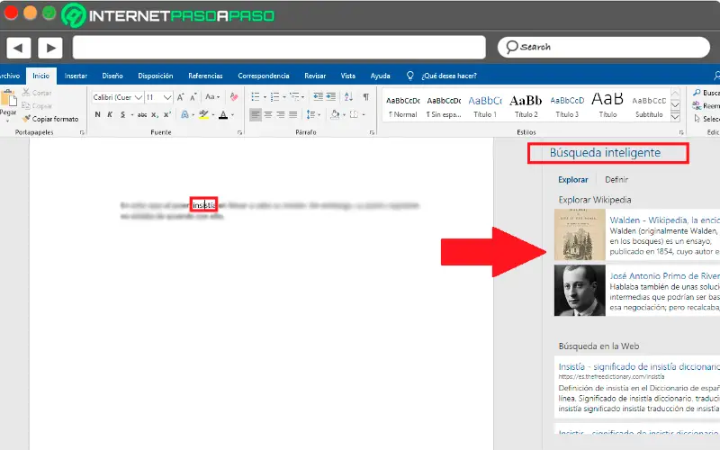 Un autre des grands avantages que nous offre Word est de pouvoir effectuer des recherches intelligentes et ainsi définir un mot dans le document sans avoir besoin de l’abandonner. Pour cela, l’application se charge d’ouvrir une fenêtre et d’y lancer la fenêtre du navigateur Web. Cela vous permet de gagner du temps et de travailler lors de la création de votre document texte.