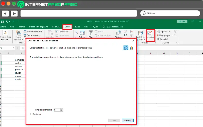 Vous pouvez activer cette option en cliquant sur «Données», là nous sélectionnons l’option «Feuille de prévision». De cette manière, vous pouvez commencer à utiliser cette fonctionnalité pour l’analyse et le traitement des données .