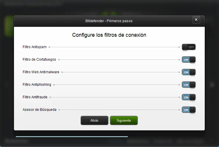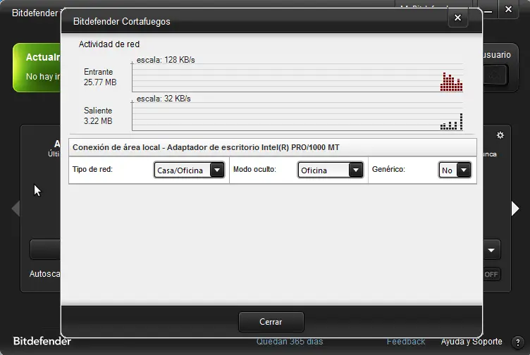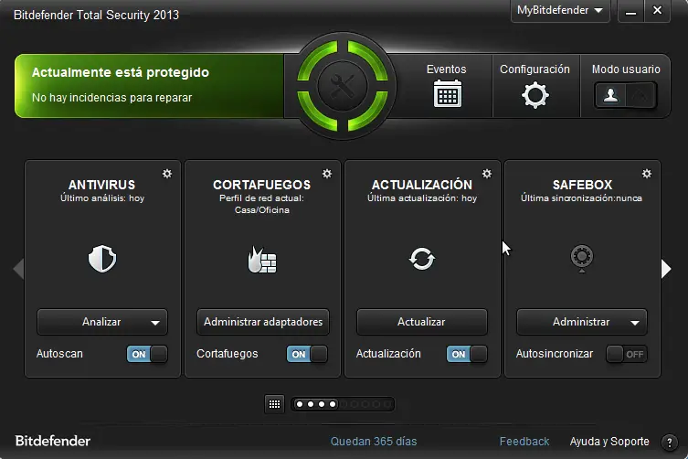 Depuis cet écran principal, nous contrôlons les différents modules: antivirus, pare-feu, mises à jour, etc. Nous pouvons nous déplacer entre les différents modules au moyen des flèches que nous avons à gauche et à droite.