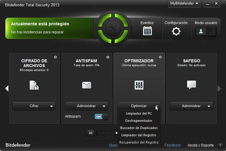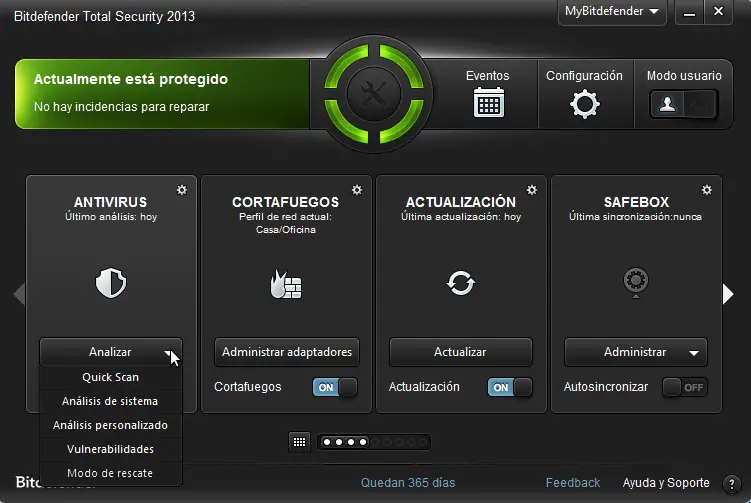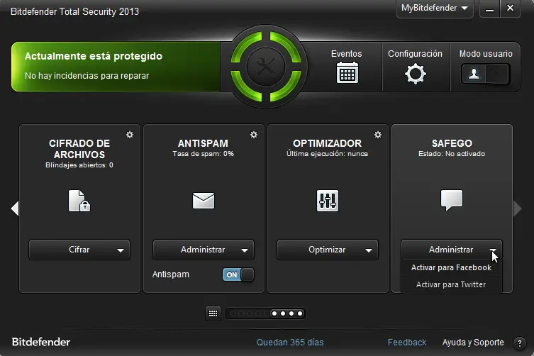 Bitdefender est l’une des suites de sécurité les plus utilisées développées par la société roumaine Softwin. Bitdefender a 3 versions: Antivirus Pro, Internet Security et Total Security. Nous pouvons consulter les caractéristiques de chacun d’eux depuis leur site principal . Principalement, l’Antivirus pro comprend uniquement un antivirus, un antispyware, une protection contre les escroqueries dans le réseau et une protection dans les réseaux sociaux, la version Internet Security comprend ce qui précède avec un pare-feu et un filtre antispam et enfin, la version Total Security est la plus complète qui comprend toutes les fonctionnalités de la suite de sécurité.