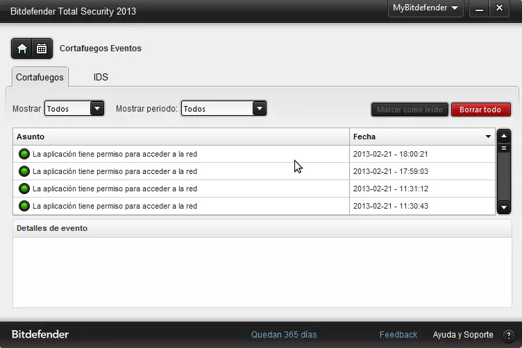 En haut, nous avons 2 boutons à partir desquels nous accéderons à la liste des événements où toutes les actions qui se produisent dans notre antivirus sont enregistrées et un commutateur à partir duquel nous pouvons activer ou désactiver le pilote automatique. Le pilote automatique fonctionne assez bien mais si vous préférez avoir le contrôle sur tous les événements qui se produisent, il est préférable de le désactiver.