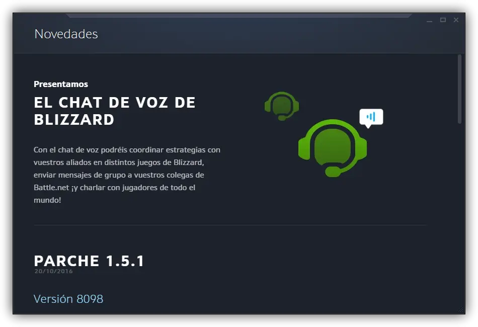 Este nuevo chat de voz está integrado dentro de la plataforma de chat de Battle.net que Blizzard presentó hace alrededor de un año y que buscaba unificar todos los chats de todos los juegos de la desarrolladora (WoW, Hearthstone, Heroes of the Storm, Diablo, etc) desde su propia plataforma para que los usuarios pudieran comunicarse con sus amigos sin necesidad de recurrir a otras plataformas.