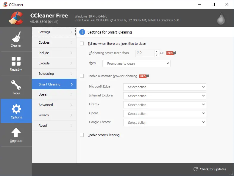 Bien sûr, dans les paramètres de configuration, nous verrons que la fonctionnalité a changé de nom et s’appelle désormais Smart Cleaning . De plus, une fois qu’il a été désactivé, il ne sera pas non plus activé et exécuté à nouveau la prochaine fois que CCleaner 5.46 sera publié. Vous pouvez télécharger CCleaner 5.46 à partir de ce même lien vers le site officiel de l’outil.