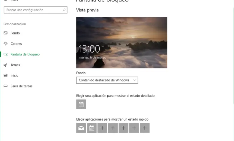 L’écran de verrouillage de Windows n’avait jamais été en mesure de personnaliser autant de choses jusqu’à l’arrivée de Windows 10. Dans le sillage des appareils mobiles, nous pouvons changer l’arrière-plan de l’ écran de verrouillage en ce que nous voulons, et également ajouter une série de raccourcis à cela écran qui nous permet d’accéder plus facilement à certaines applications.