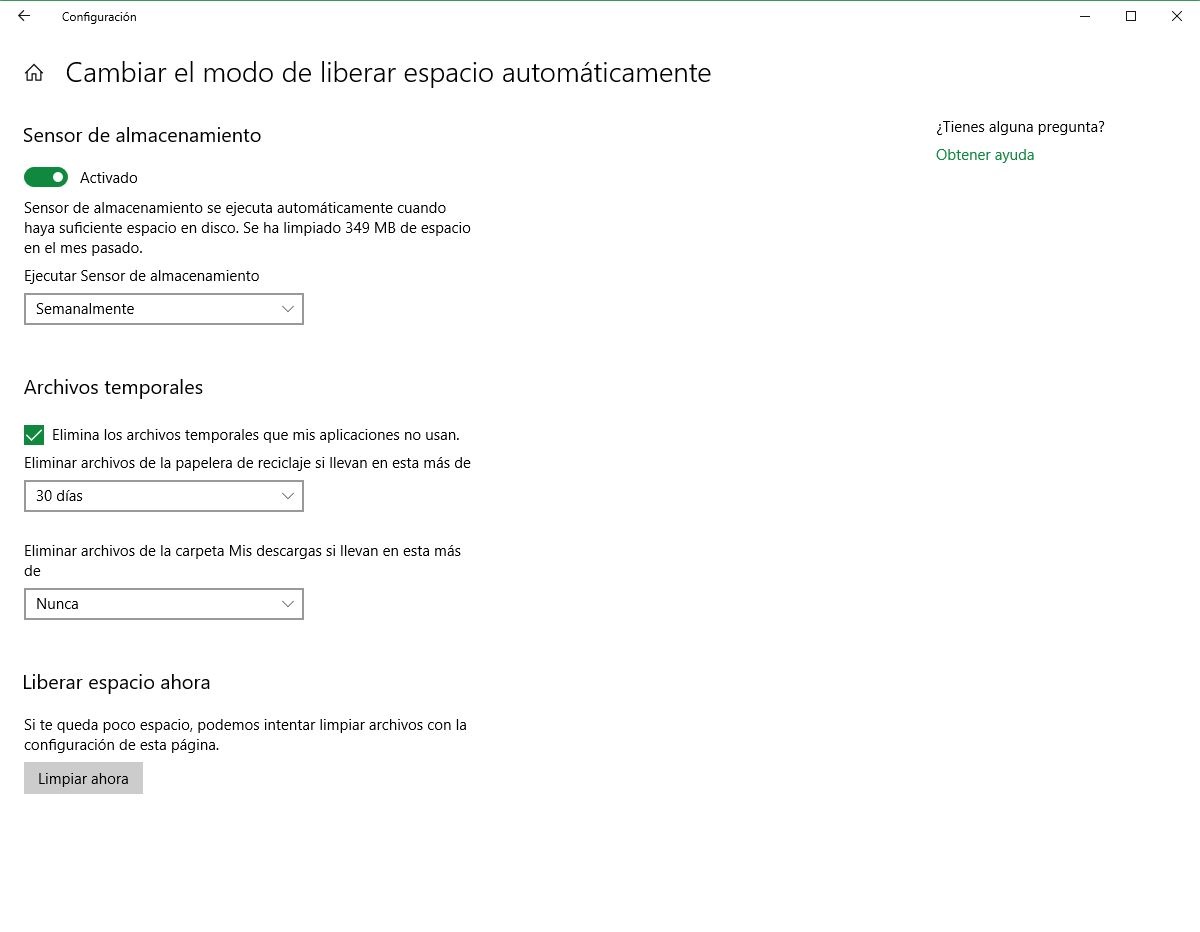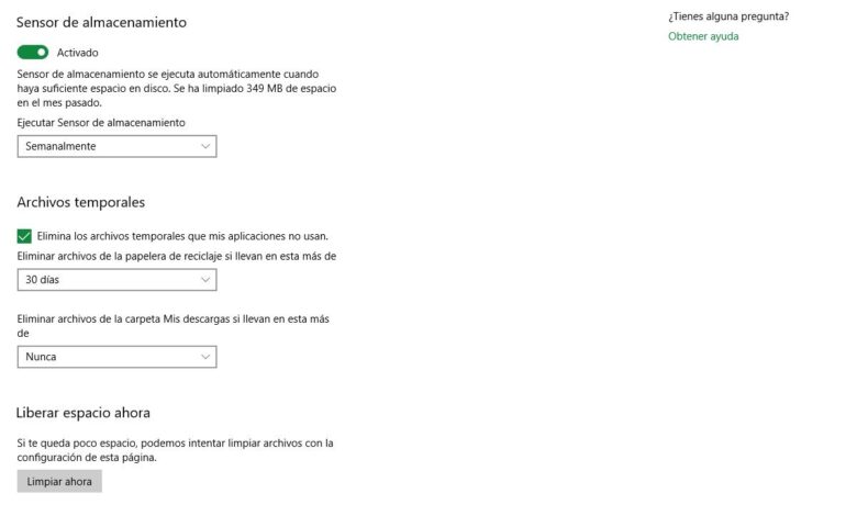 L’une des principales fonctions de CCleaner est de nettoyer notre disque dur, de supprimer les fichiers temporaires et inutiles, en plus de vider la corbeille. Si nous avons Windows 10 , le meilleur moyen de remplacer cette fonction est le capteur de stockage . Cette fonction incluse dans Windows 10 est chargée de contrôler le stockage de notre ordinateur et supprimera automatiquement les fichiers temporaires des applications et videra la corbeille chaque fois que nécessaire.