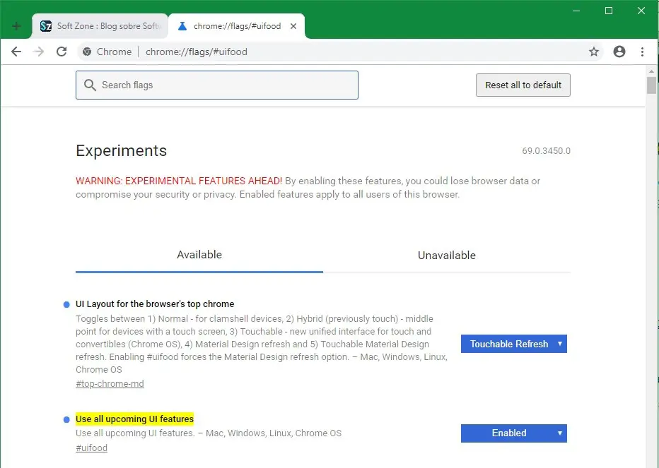 - chrome: // flags # uifood